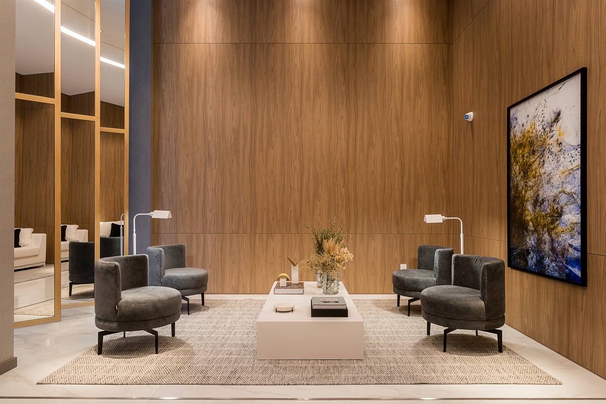 - Persianas automatizadas e vidros laminados nos eStúdios e nas suítes dos apartamentos