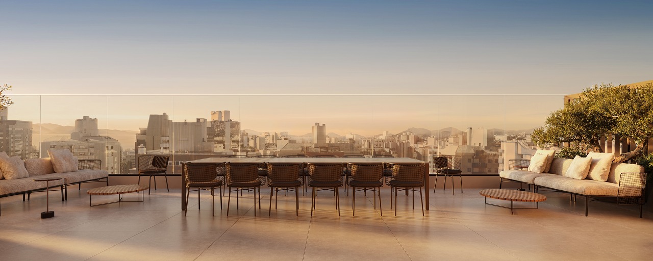 Um dos grandes diferenciais do Soul está no rooftop com área de lazer completa, que proporciona uma experiência única, além de ambientes como coworking, academia e espaços de convivência pensados para o dia a dia contemporâneo.