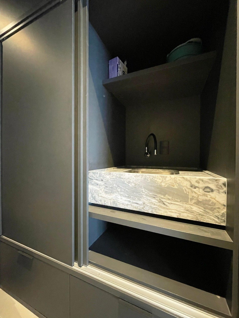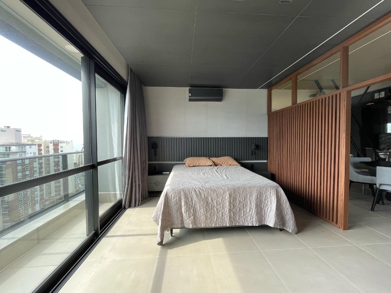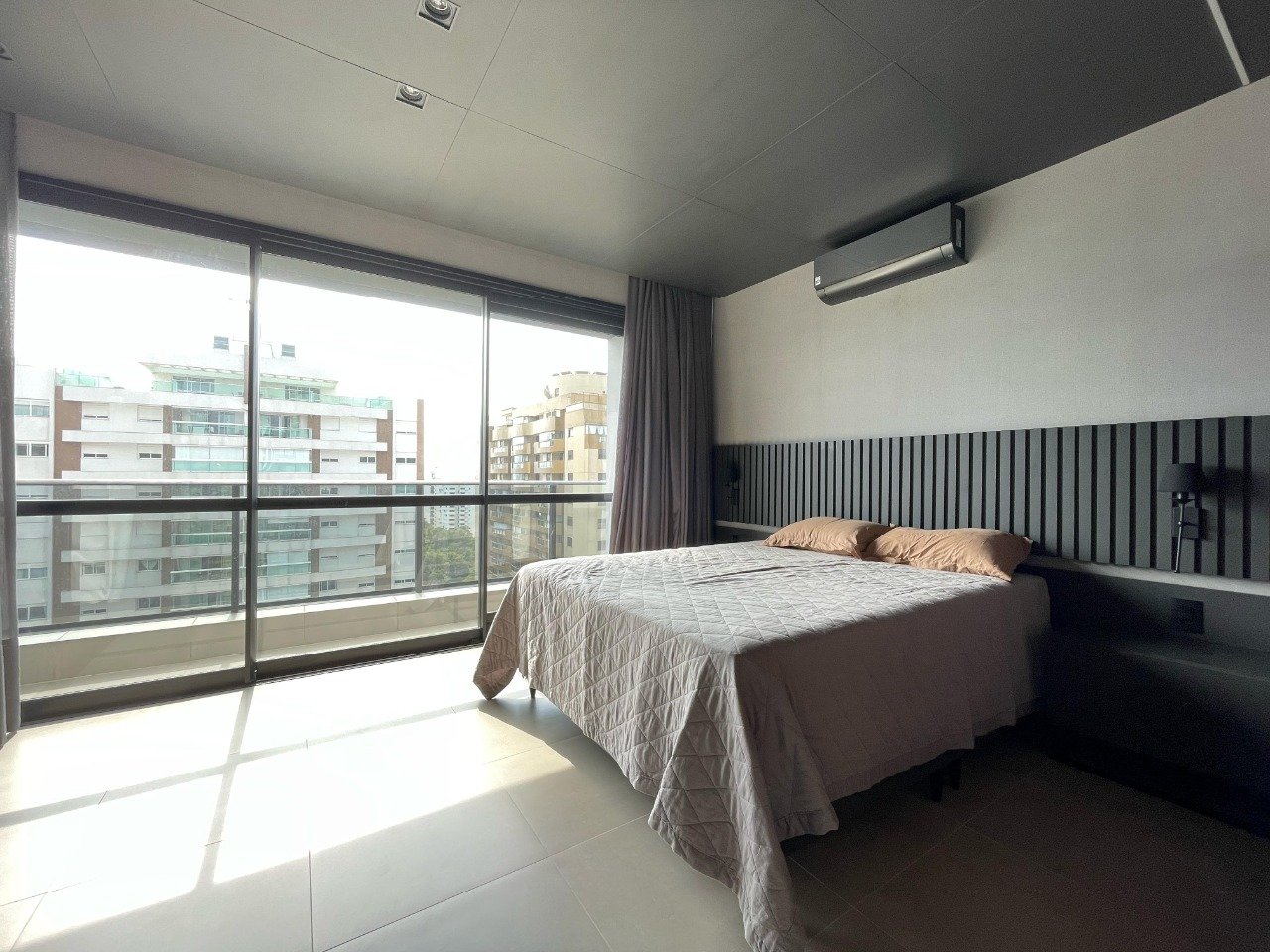 - Outras informações: Face principal Norte e Leste. Piso porcelanato. Estúdio mobiliado com armários na cozinha, dormitório e banheiro. Ar condicionado Split sala e dormitório.
