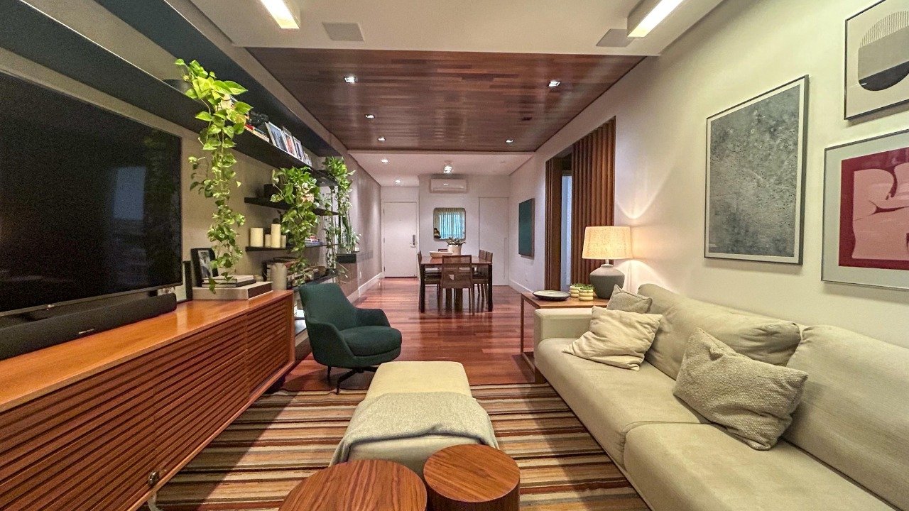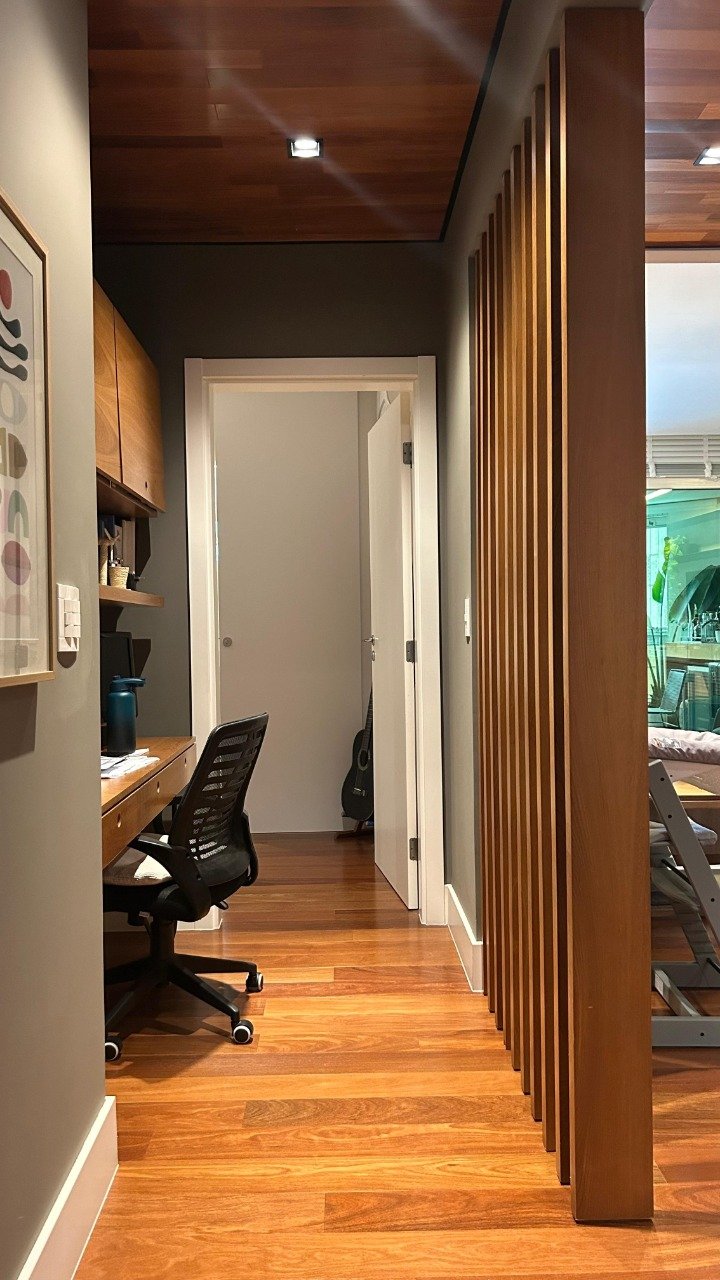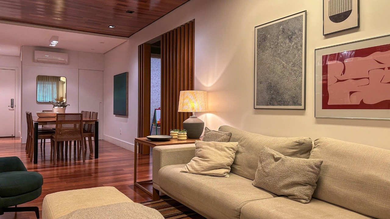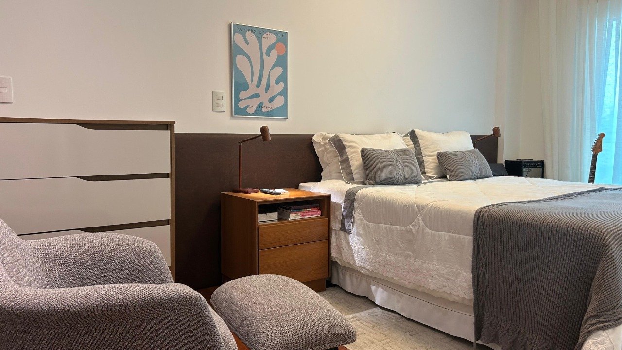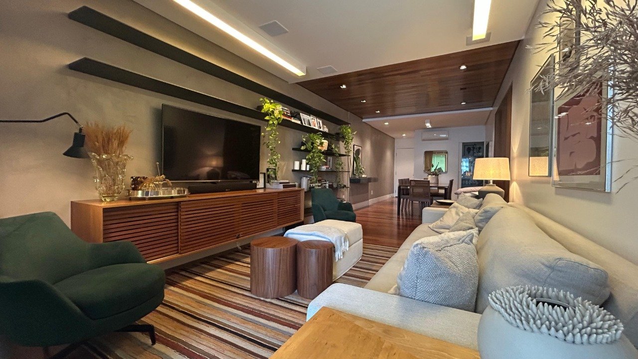 - Outras informações: Apartamento semi mobiliado com armários planejados em todos os ambientes. Piso porcelanato e madeira. Ar condicionado split instalado na sala e dormitórios. Suíte principal com hidromassagem. Janelas com persianas. Fechadura eletrônica.