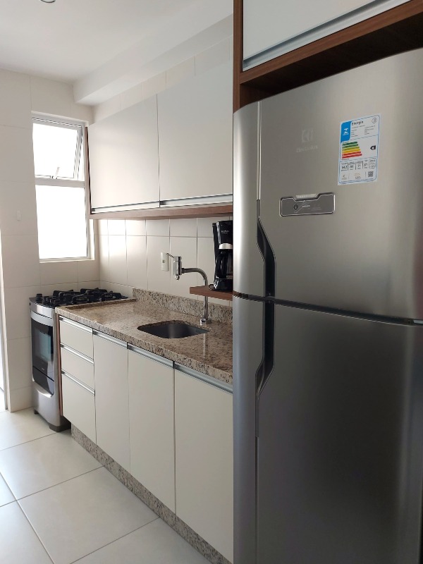 - Outras informações: Face principal norte. Piso cerâmico. Apartamento semi mobiliado com móveis planejados na cozinha e armários e camas nos quartos. Espera de ar condicionado split na sala e quartos. Medidores individuais.