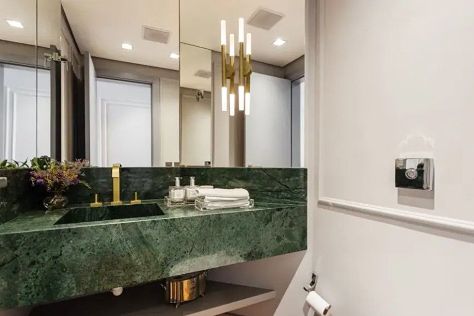 - Piso em madeira nobre e porcelanato nas áreas molhadas