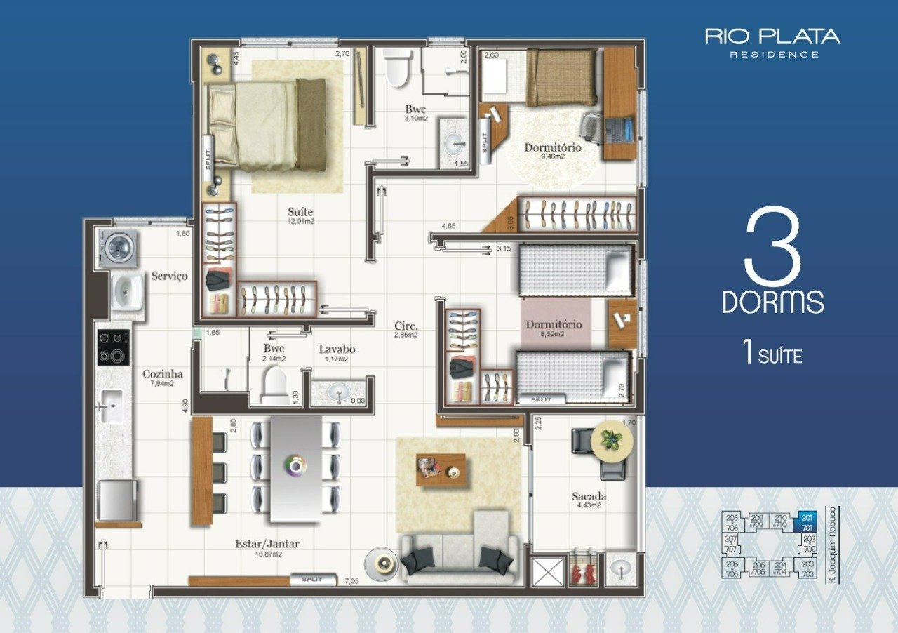 - Apartamento 3 dormitórios (1 suíte)