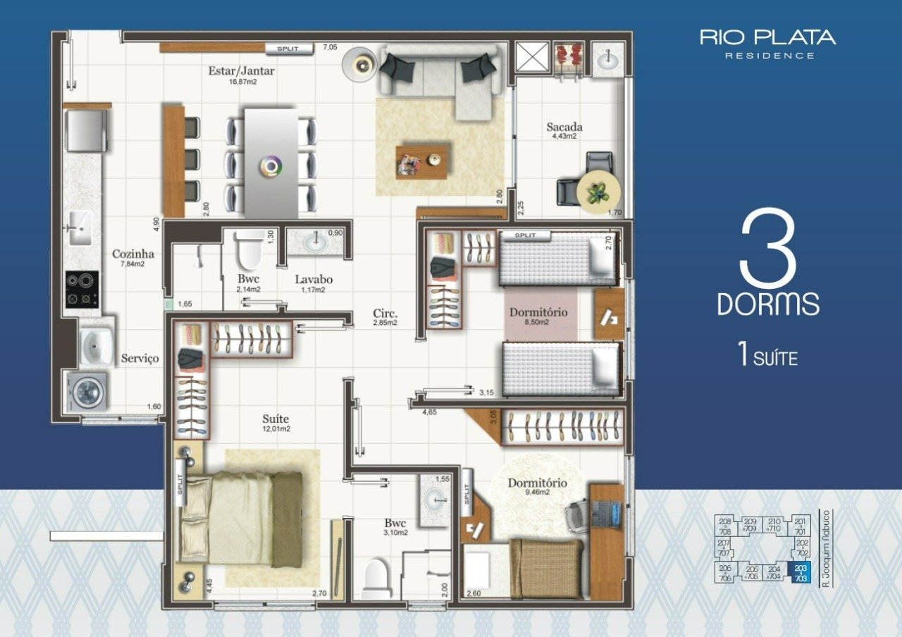 - Apartamento 3 dormitórios (1 suíte)
