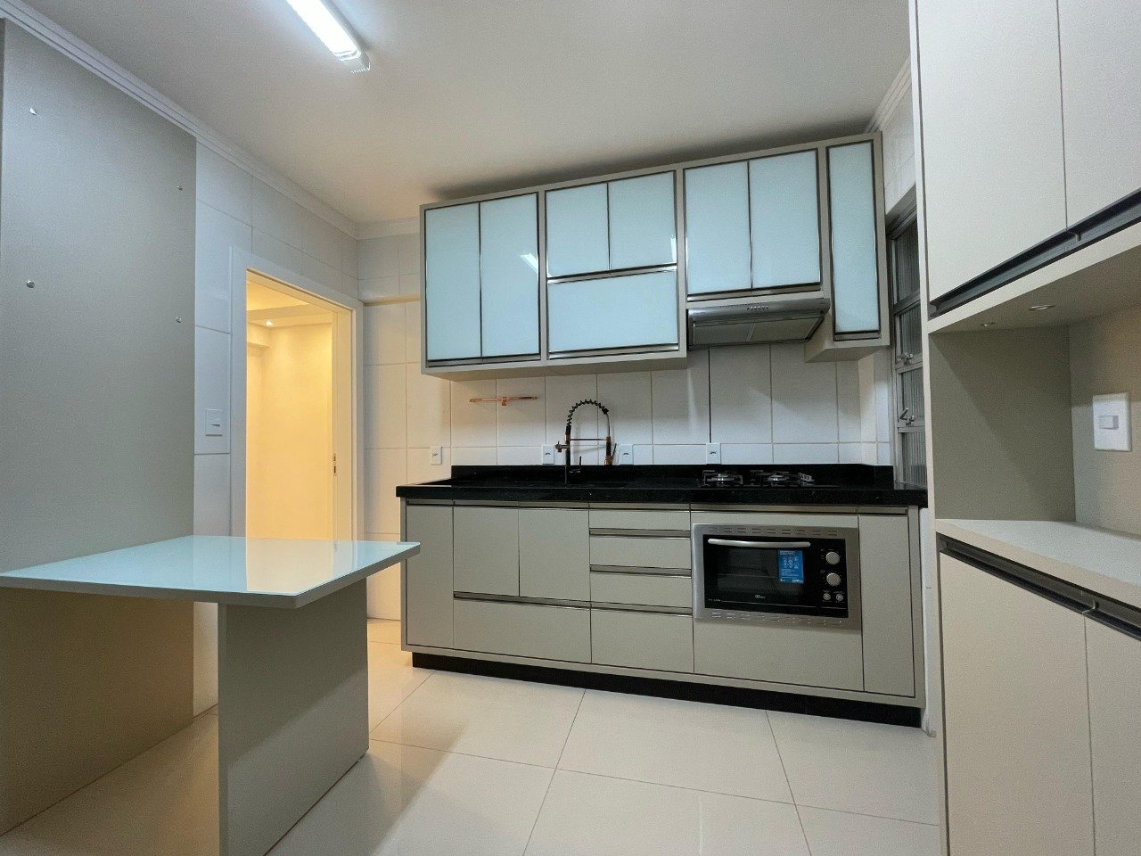 - Outras informações: Face principal. Vista livre. Piso cerâmico. Apartamento semi mobiliado com armários na cozinha e banheiro. Ar condicionado split instalado nos dormitórios. Janelas dos quartos com persianas.