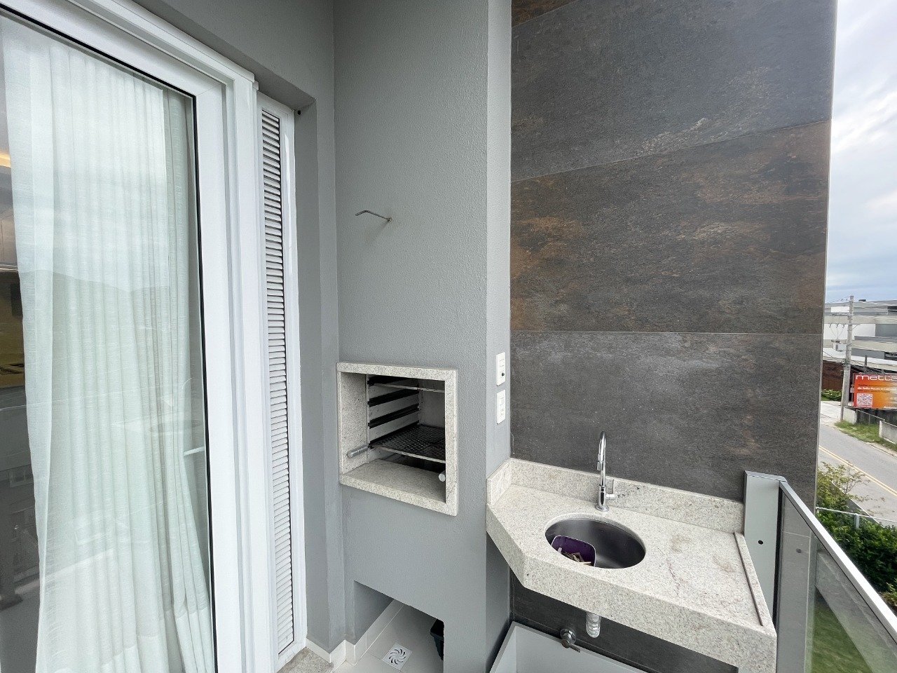 - Ampla sacada com churrasqueira, integrada à suíte master