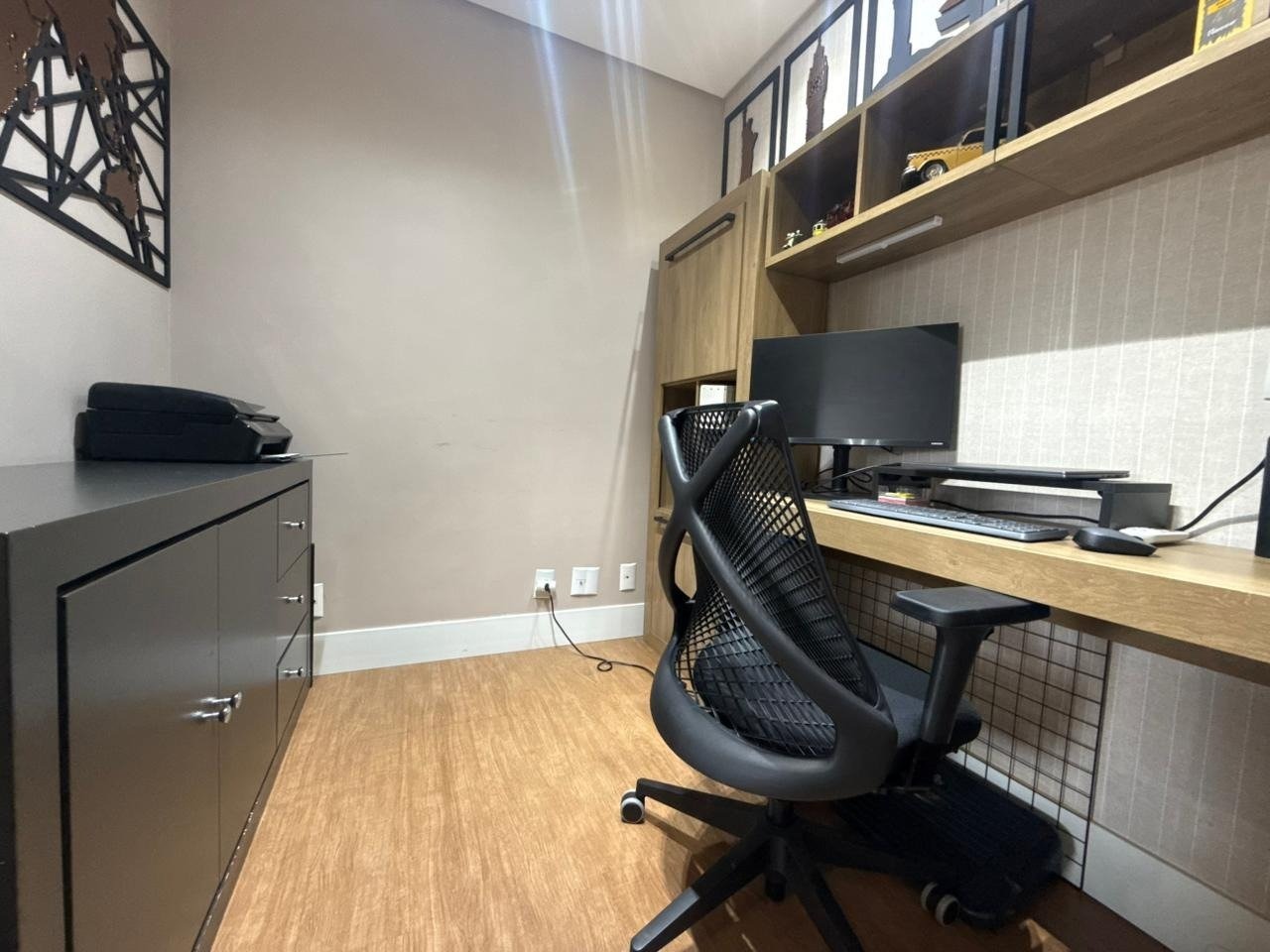 - Sala para 2 ambientes com painel sob medida e ar-condicionado split