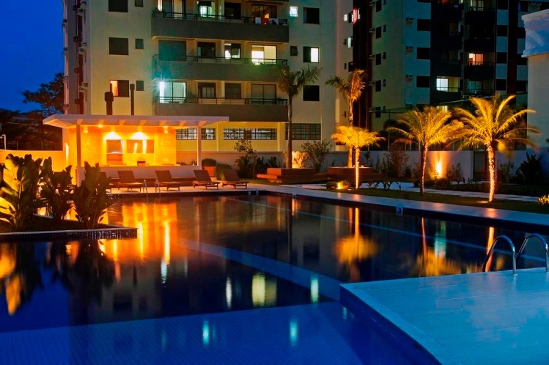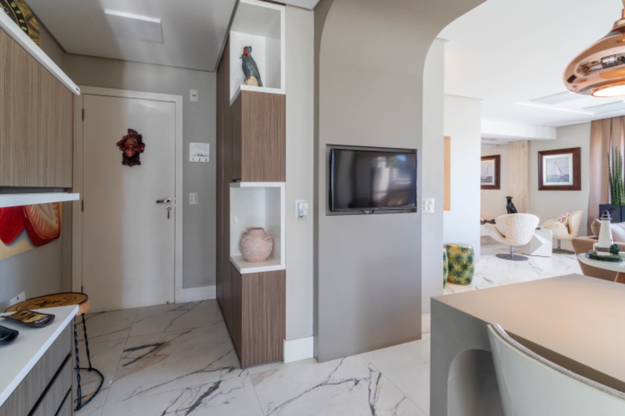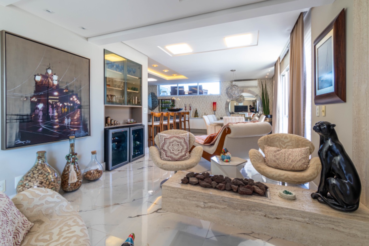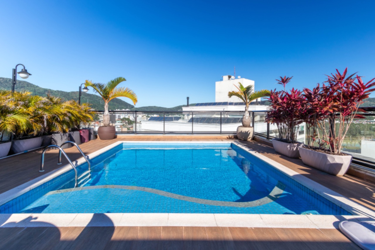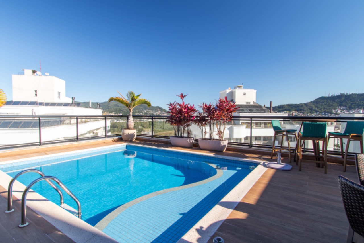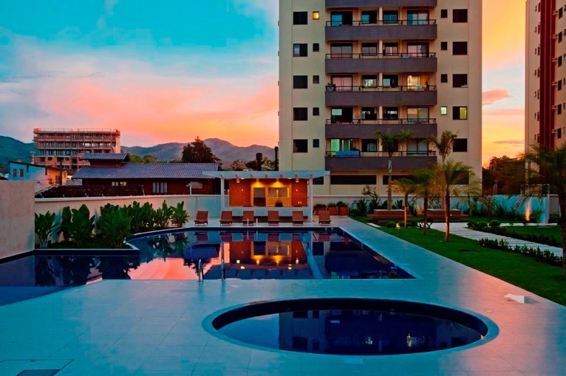 - Outras informações: Vista livre. Piso porcelanato e laminado de madeira. Apartamento mobiliado, decorado e com lareira e piscina. Ar condicionado split na sala e quartos. Aquecimento de água por aquecedor de passagem. Persianas nas janelas dos quartos.