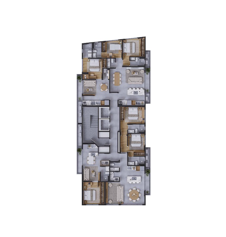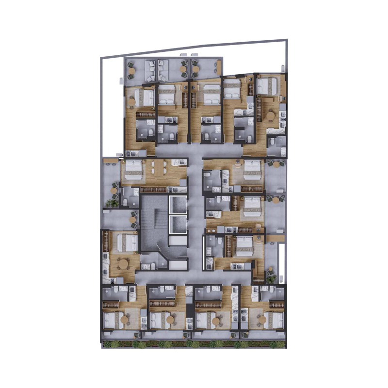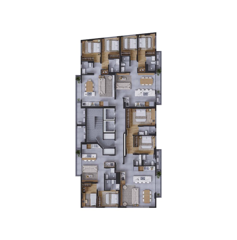 O projeto combina arquitetura contemporânea com soluções inteligentes, criando espaços que acompanham o ritmo da cidade. As unidades incluem studios, apartamentos de 1 dormitório e opções de 2 dormitórios, com metragens que atendem diferentes perfis — desde quem busca o primeiro imóvel até investidores que desejam alta liquidez e valorização.