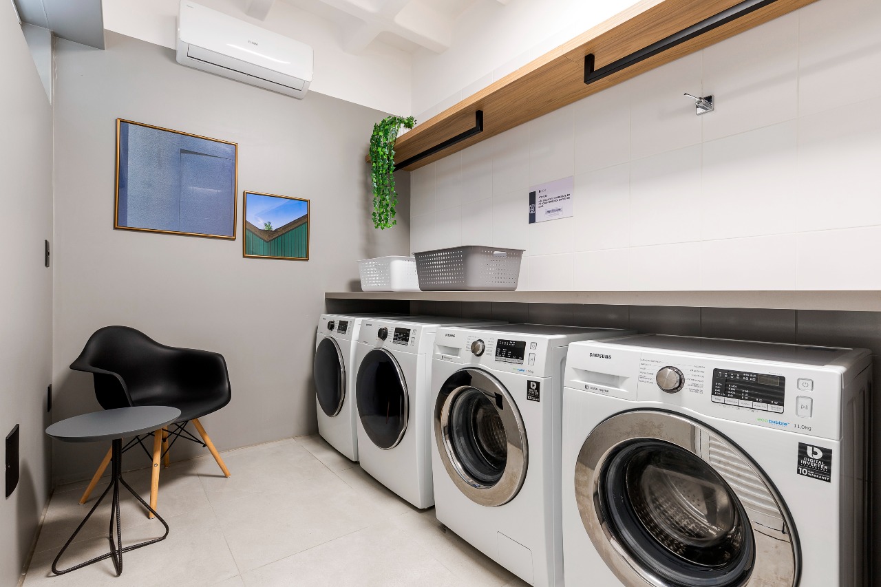 As unidades são entregues com uma vaga de garagem, banheiro completo com bancada, louças, metais nobres, box em vidro temperado e lavabos.