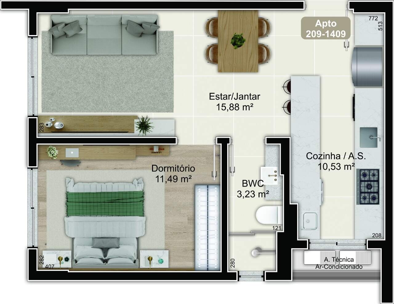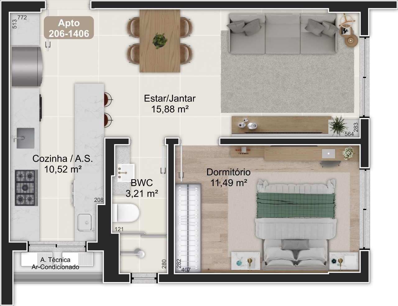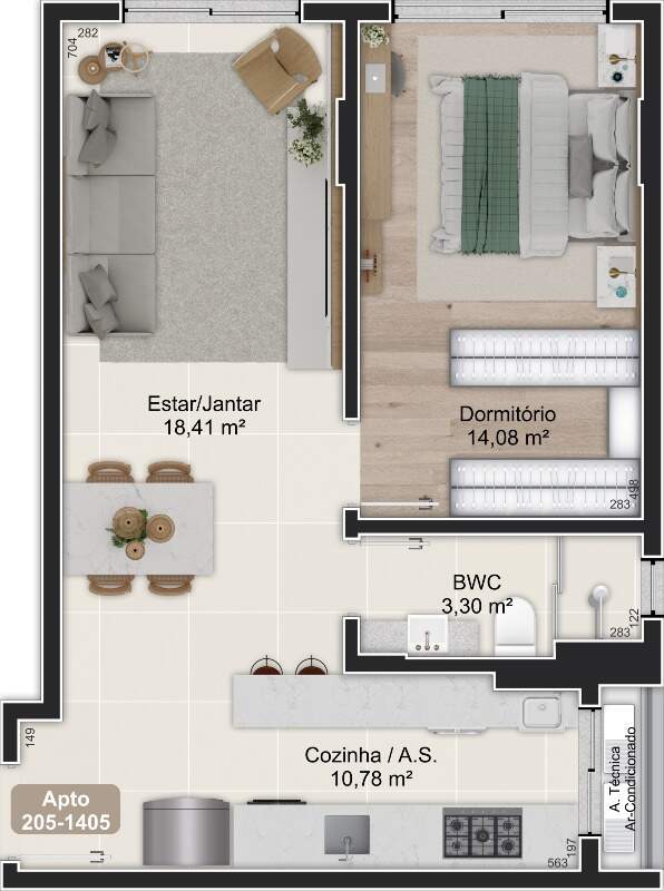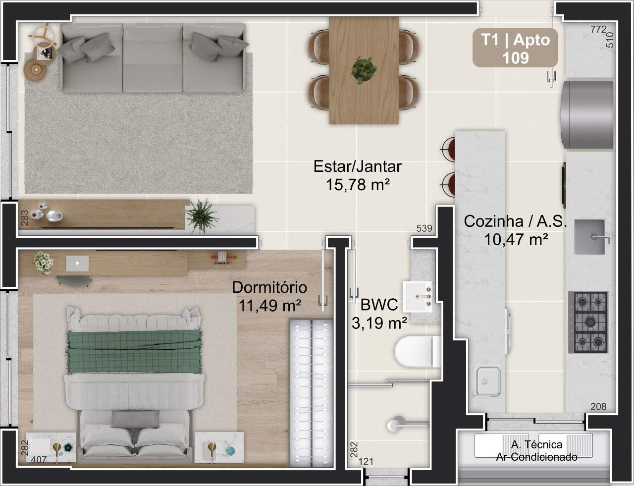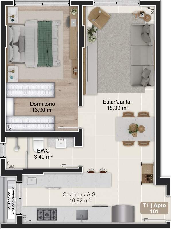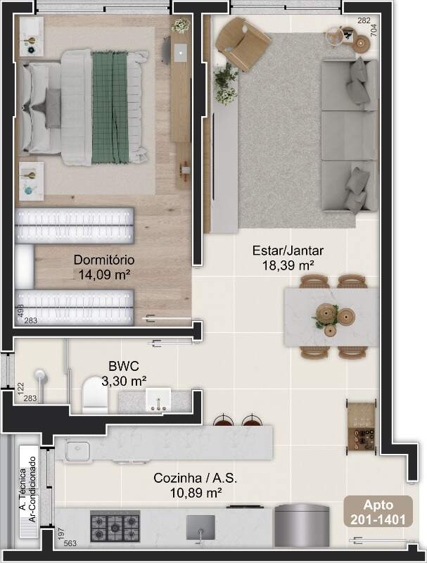 - Apartamentos com 1 dormitório