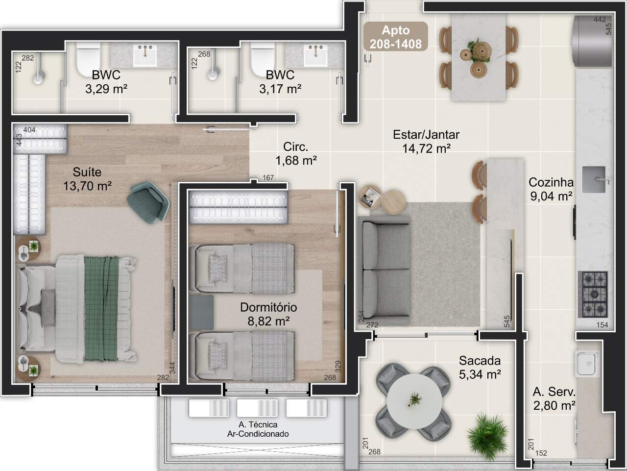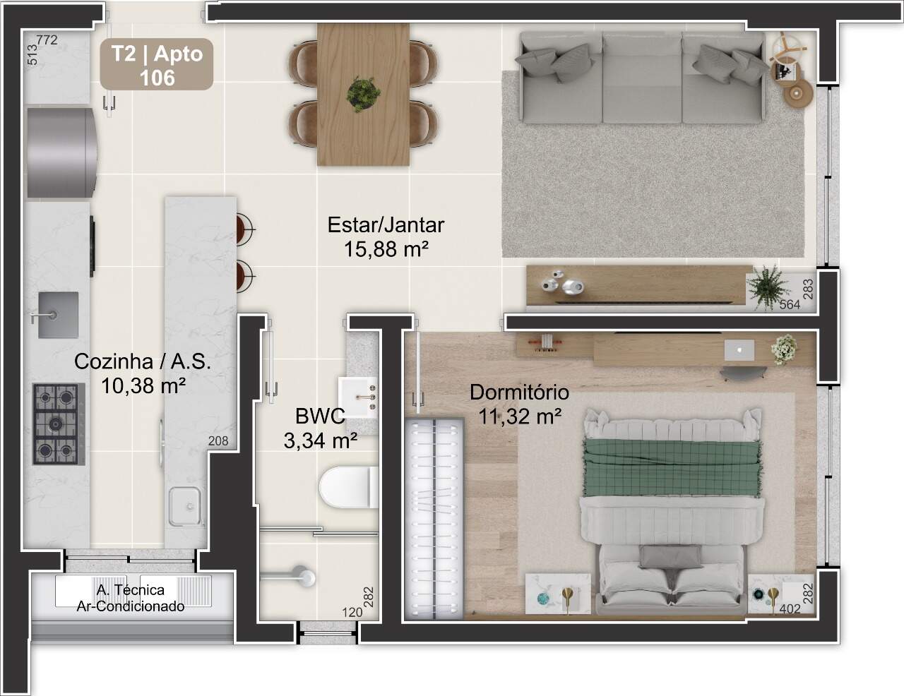 - Apartamentos com 2 dormitórios