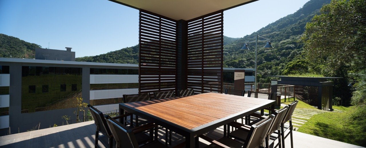Outras informações: Sala com móveis, bancada esculpida, piso vinílico, Iluminação, cortina automatizada, Ar condicionado Split. Forro ripado de tauari natural.