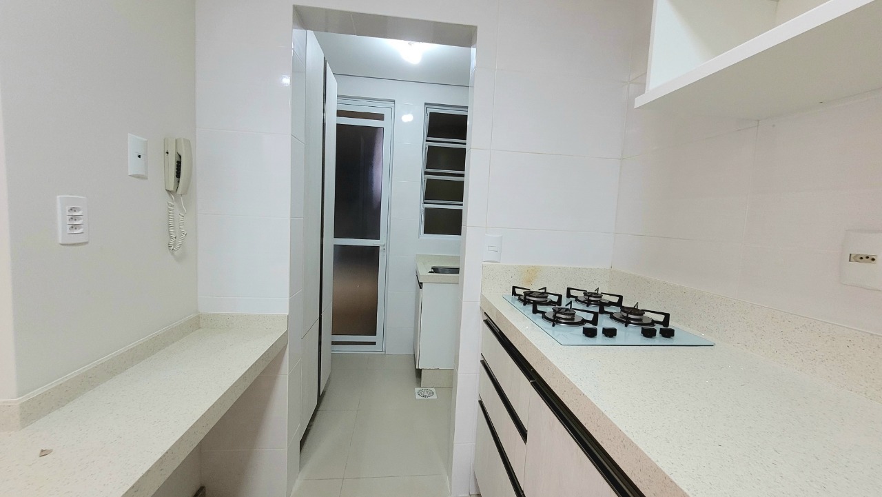 Outras informações: Face principal oeste com vista lateral para o mar. Piso porcelanato. Apartamento mobiliado com armários planejados em todos os ambientes. Ar condicionado split instalado na suite. Persianas dos dormitórios automatizadas. Aquecimento de água a gás. Medidores individuais.