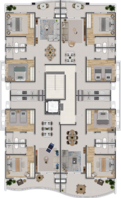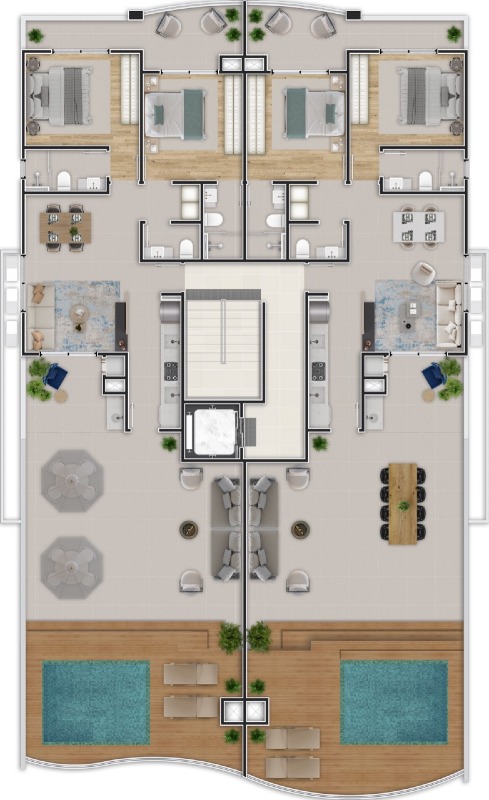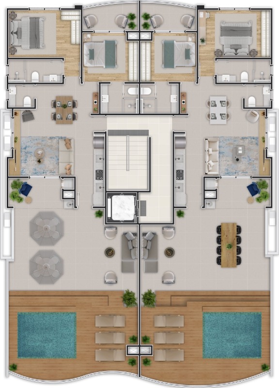 - Coberturas de 2 suítes de 151,54m² a 161,85m² privativos