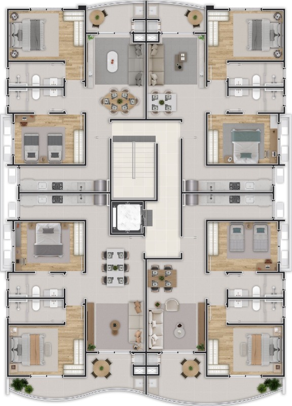 - Apartamentos de 2 dormitórios (1 suíte) de 70,91m² a 84,22m² privativos