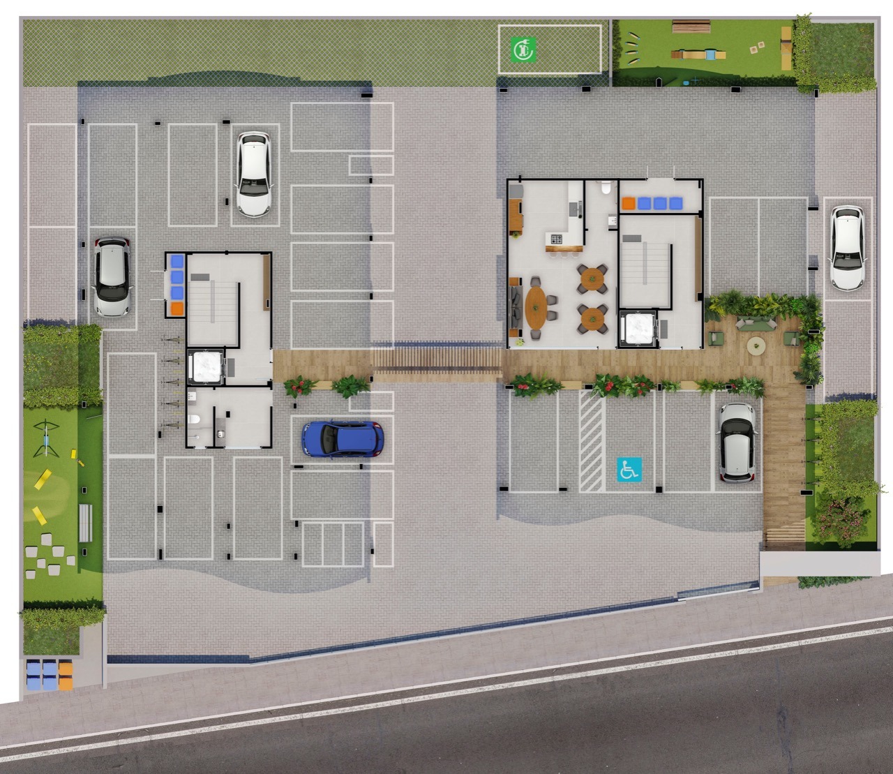 - Total de vagas de garagem: 21 para carros e 6 para motos
