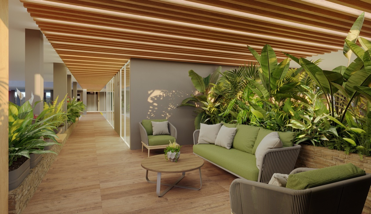 - Reaproveitamento de água da chuva para algumas áreas comuns e irrigação de jardins